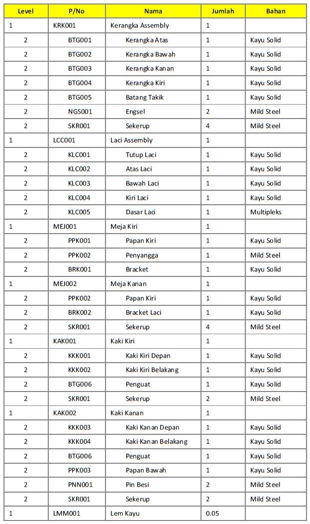 Cara membuat bill of material (bom) dan contohnya.