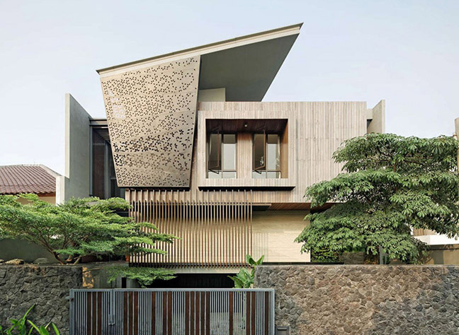 Beberapa material fasad atau facade yang bisa digunakan, diantaranya fasad batu alam, panel grc, beton (concrete), bata ekspos dan kayu.